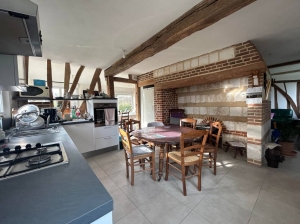 Vous trouverez dans cette longère rénovée: une entrée ouverte sur la cuisine équipée, un salon très chaleureux avec son poêle à bois, ces deux belles pièces sont ouvertes sur une grande salle à manger .