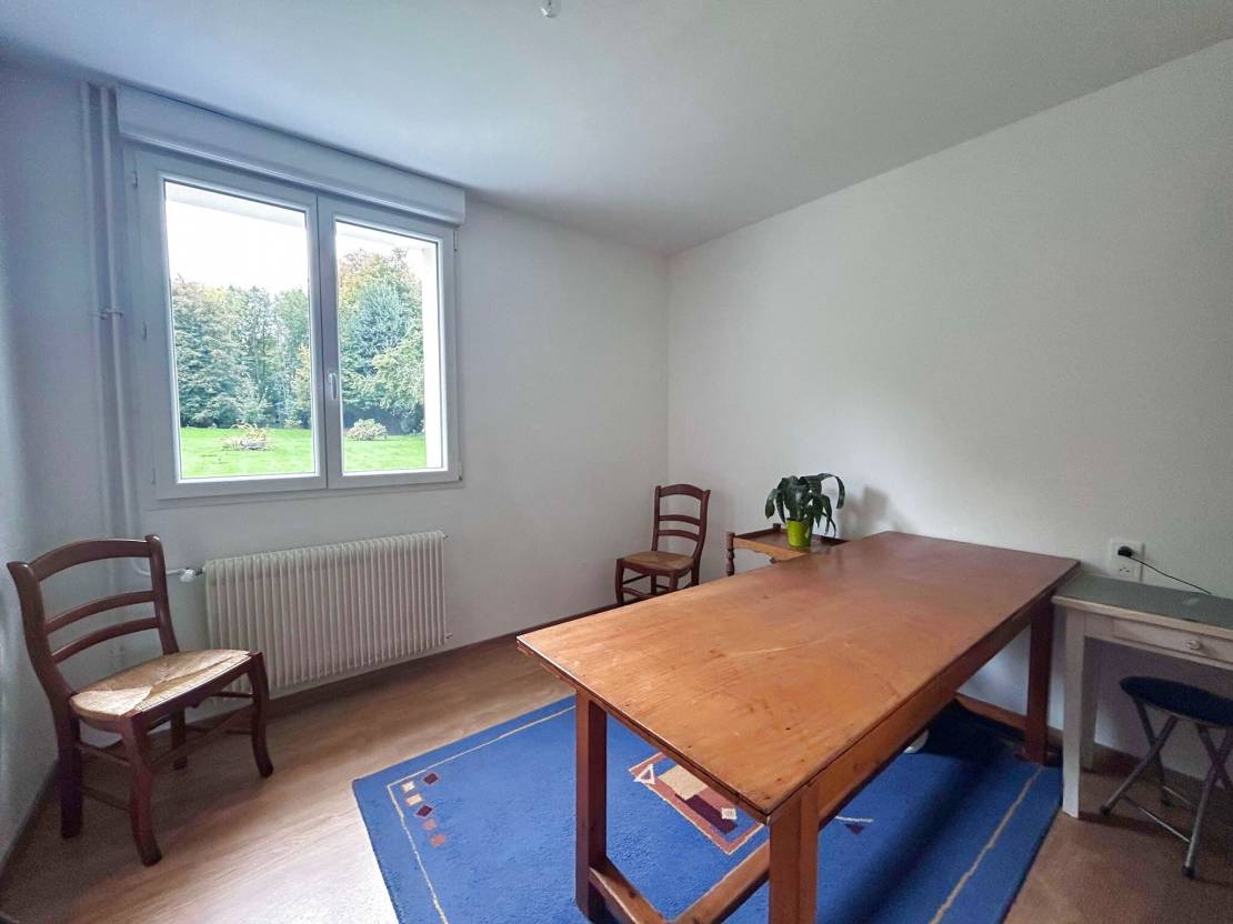 Le grand plus de la pièce à vivre et de sa cuisine, une belle luminosité grace à ses baies vitrées avec une vue sur le jardin.