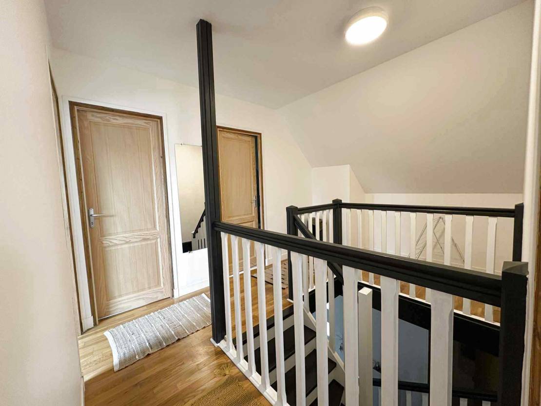 À l’étage, un palier dessert deux chambres, dont une avec dressing, un bureau (pouvant également faire office de petite chambre), ainsi qu’une salle de bains avec WC.