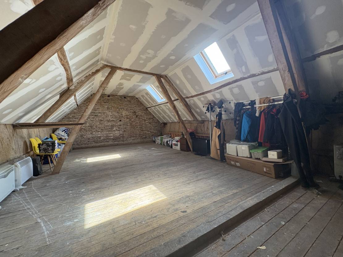 À l’étage, un palier dessert trois chambres, dont une avec douche et vasque, un WC séparé, ainsi qu’un grenier de 39 m2 à terminer d’aménager selon vos envies.