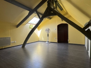 Partie habitation : Salon, chambre avec dressing, salle d'eau avec WC. À l'étage : palier desservant une chambre et un grenier aménageable